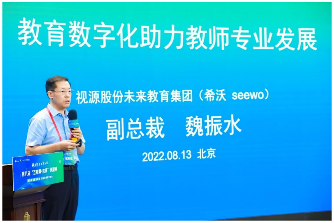 創(chuàng)新教育服務(wù)供給,推動(dòng)教育數(shù)字轉(zhuǎn)型。近日,由北京市海淀區(qū)人民政府主辦、中關(guān)村互聯(lián)網(wǎng)教育創(chuàng)新中心承辦的第八屆“互聯(lián)網(wǎng)+教育”創(chuàng)新周在北京開(kāi)幕,來(lái)自教育行業(yè)主管部門(mén)、研究機(jī)構(gòu)和企業(yè)的代表及專家學(xué)者,將在7天內(nèi)就教育數(shù)字化轉(zhuǎn)型新路徑進(jìn)行深入研討。在會(huì)議開(kāi)幕式上,作為技術(shù)創(chuàng)新力量,視源股份未來(lái)教育集團(tuán)(希沃) 副總裁魏振水發(fā)表主題演講,分享了希沃在推進(jìn)教育數(shù)字化、助力教師專業(yè)發(fā)展方面的思考和實(shí)踐。
