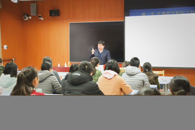 俞建勇為全校本科生、研究生開設(shè)《紡織材料學(xué)》《功能紡織材料與技術(shù)》等專業(yè)課和技術(shù)前沿課,把最新的研究成果帶到教室、引入課堂,讓學(xué)生在系統(tǒng)學(xué)習(xí)專業(yè)知識的同時,能夠及時接觸到當(dāng)今紡織材料科技的前沿發(fā)展和廣泛應(yīng)用,“幫助學(xué)生樹立學(xué)習(xí)紡織材料大有可為的信心和決心”。