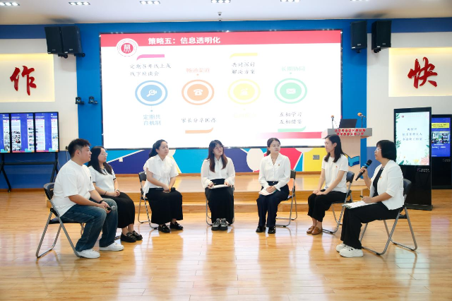 場(chǎng)景再現(xiàn)展示成為本次活動(dòng)的一大亮點(diǎn)。區(qū)級(jí)班主任帶頭人工作室成員現(xiàn)場(chǎng)研討育人難題,家長(zhǎng)沙龍聚焦育兒困惑互動(dòng)交流,家長(zhǎng)沙龍伙伴式溝通現(xiàn)場(chǎng)呈現(xiàn),班主任通過(guò)家長(zhǎng)接待日實(shí)景模擬展現(xiàn)精準(zhǔn)指導(dǎo)實(shí)操過(guò)程。三個(gè)場(chǎng)景分別再現(xiàn)了學(xué)校日常工作中學(xué)校主導(dǎo)賦能家庭教育的生動(dòng)場(chǎng)景。