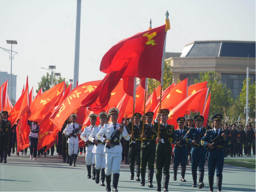 唐工大黨委書記李金生宣布軍訓(xùn)會(huì)操開始。伴隨著鏗鏘有力的《分列式進(jìn)行曲》,由2025級新生組成的受閱方隊(duì)意氣風(fēng)發(fā)、斗志昂揚(yáng),邁著矯健整齊的步伐依次通過主席臺接受檢閱。同學(xué)們目光堅(jiān)定、口號響亮、動(dòng)作規(guī)范,充分展現(xiàn)了為期2周的軍事技能訓(xùn)練取得的成果和新時(shí)代青年學(xué)子朝氣蓬勃、奮發(fā)向上的精神風(fēng)貌。