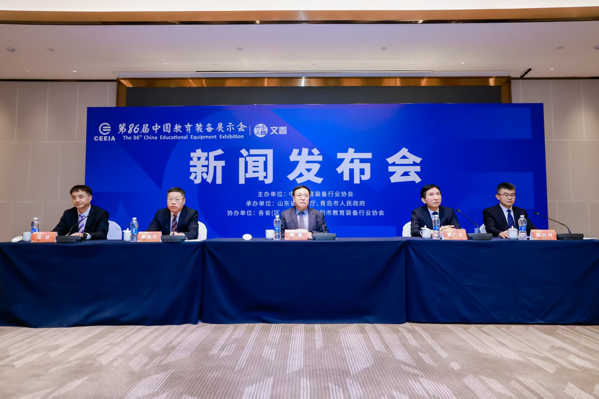 中國教育裝備行業(yè)協(xié)會秘書長李瀛,山東省教育廳總督學(xué)袁廣全,青島市教育局總督學(xué)李曉元,青島世博城公司黨委書記、副總經(jīng)理肖波出席發(fā)布會介紹有關(guān)情況并回答記者提問。會議由山東省教育發(fā)展服務(wù)中心黨委書記、主任魏光祥主持。