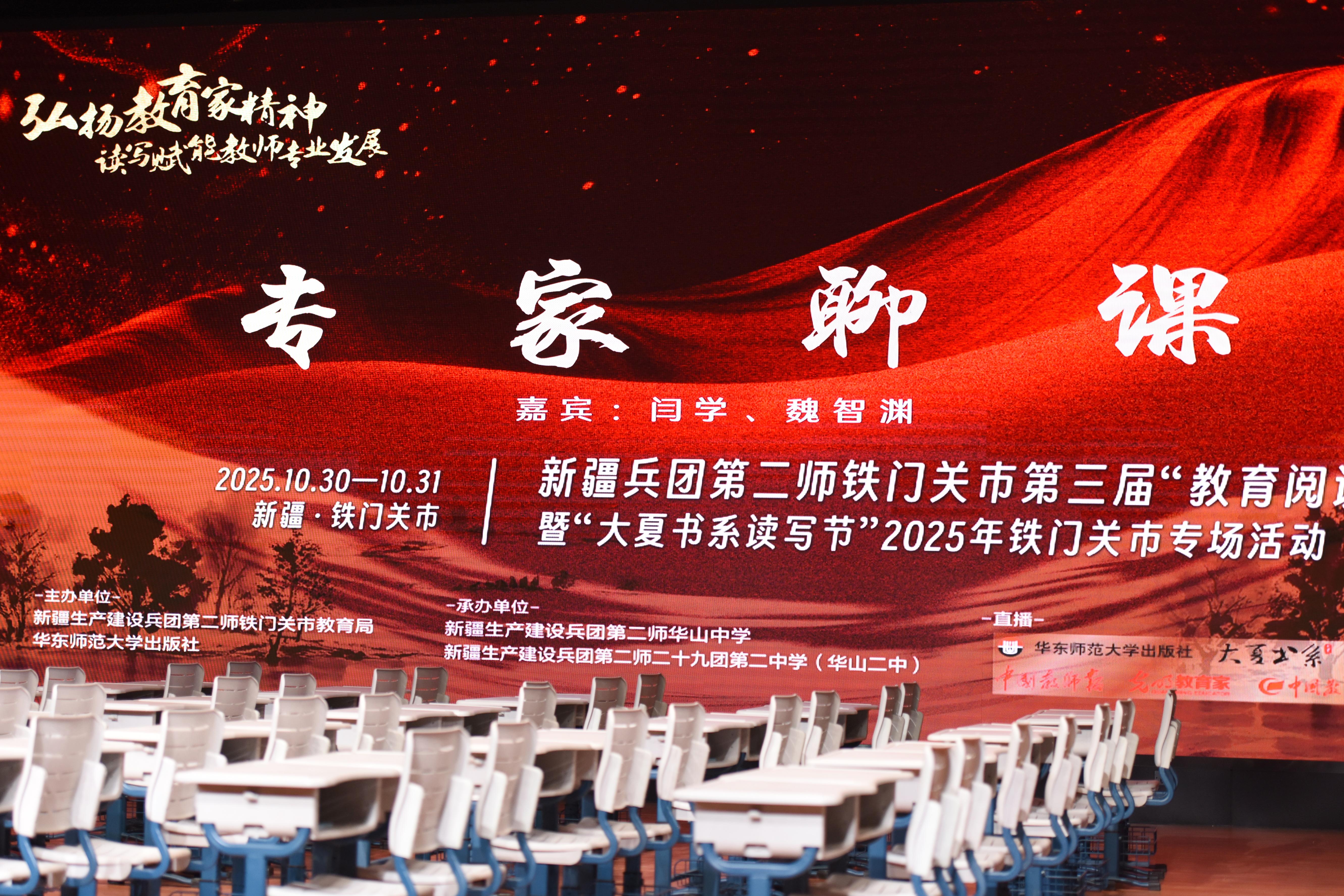 中國教育新聞網(wǎng)訊(通訊員 祝漫漫 記者 戚悅)10月30日至31日,由新疆生產(chǎn)建設(shè)兵團第二師鐵門關(guān)市教育局、華東師范大學(xué)出版社聯(lián)合主辦的第三屆“教育閱讀節(jié)”暨“大夏書系讀寫節(jié)”鐵門關(guān)市專場活動,在新疆生產(chǎn)建設(shè)兵團第二師二十九團第二中學(xué)(華山二中)成功舉辦。