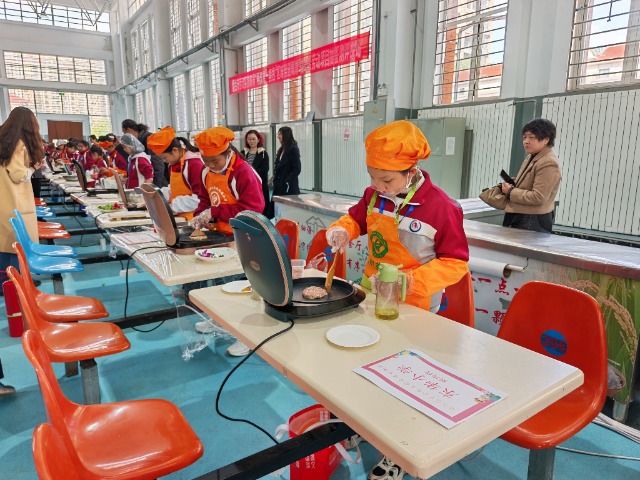煙臺市勞動實(shí)踐教育“兩改革一特色”觀摩研討活動現(xiàn)場,學(xué)生展示勞動技能。煙臺市教育局供圖