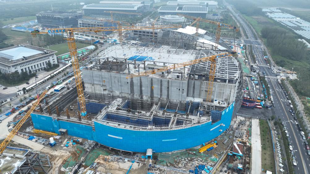 2025年10月1日拍攝的緊湊型聚變能實(shí)驗(yàn)裝置(BEST)建設(shè)現(xiàn)場(chǎng)(無(wú)人機(jī)照片)。新華社記者周牧攝