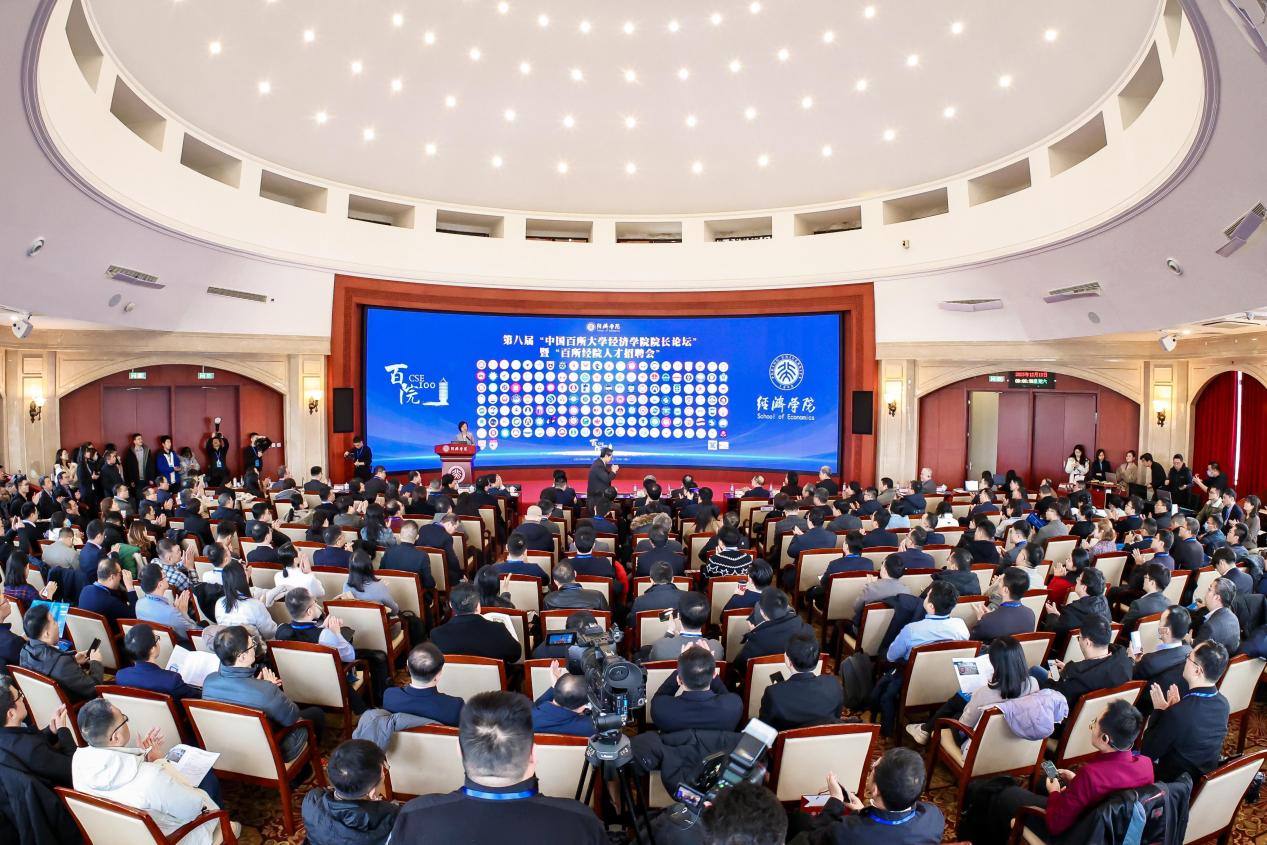中國教育報(bào)-中國教育新聞網(wǎng)訊(記者 李澈)12月12日至14日,北京大學(xué)經(jīng)濟(jì)學(xué)院舉辦第八屆“中國百所大學(xué)經(jīng)濟(jì)學(xué)院院長論壇”暨“百所經(jīng)院人才招聘會(huì)”。論壇以“AI時(shí)代的經(jīng)濟(jì)學(xué)教育與研究范式創(chuàng)新”為主題,由開幕式、第三屆“孫尚清發(fā)展知識(shí)研究與交流獎(jiǎng)”頒獎(jiǎng)儀式、主題演講、圓桌論壇、國際參會(huì)嘉賓代表致辭、百所經(jīng)院人才招聘會(huì)、平行分論壇、閉幕式等環(huán)節(jié)組成。來自全國218所院校的19位校長和242位院長齊聚一堂。