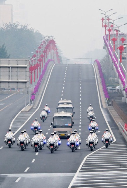 載著英雄的禮賓車隊從住地出發(fā),在禮賓摩托車隊護(hù)衛(wèi)下,駛上復(fù)興路,駛?cè)腴L安街,駛向人民大會堂。
