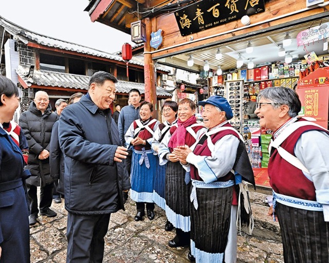 2025年3月19日至20日,中共中央總書記、國家主席、中央軍委主席習(xí)近平在云南考察。這是19日下午,習(xí)近平在麗江古城考察時(shí),與當(dāng)?shù)鼐用裼H切交流。 新華社記者 燕雁/攝
