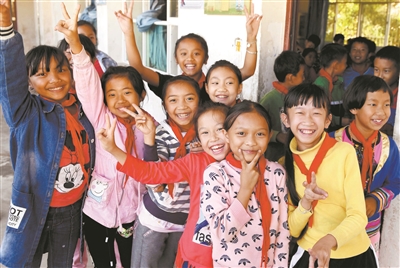 近日,云南西雙版納基諾山基諾族鄉(xiāng)民族小學(xué)學(xué)生面對(duì)鏡頭露出笑容。該校共有712名學(xué)生,大多是基諾族?;Z族僅有兩萬(wàn)多人,主要居住在基諾山基諾族鄉(xiāng)。近年來(lái),在各級(jí)黨委、政府的關(guān)心下,當(dāng)?shù)氐拿褡褰逃聵I(yè)蓬勃發(fā)展。當(dāng)?shù)剡€實(shí)施了“兩免一補(bǔ)”“營(yíng)養(yǎng)改善計(jì)劃”及“人口較少民族學(xué)生生活補(bǔ)助”等措施,并確保適齡兒童全部入學(xué)。如今,基諾族學(xué)生在寬敞明亮的教室里接受教育,快樂(lè)學(xué)習(xí),健康成長(zhǎng)。新華社記者 藺以光 攝