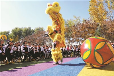 日前,河北省唐山市豐潤區(qū)沙流河鎮(zhèn)葛家屯小學舞獅隊在為學生們表演。近年來,豐潤區(qū)教育部門積極開展“傳統(tǒng)文化進校園”系列活動,充分利用民間藝術資源,開設剪紙、皮影、戲曲等民間藝術課,讓學生感受傳統(tǒng)文化的魅力。