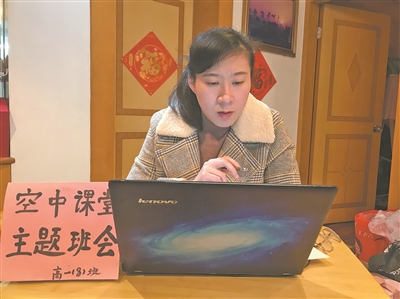 圖為北京師范大學(xué)臺(tái)州附屬高級(jí)中學(xué)高一(8)班召開(kāi)空中主題班會(huì),班主任江雨佳老師通過(guò)釘釘直播,與在家的學(xué)生開(kāi)展線上假期學(xué)習(xí)輔導(dǎo)、生活指導(dǎo)等教學(xué)服務(wù)。