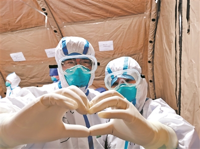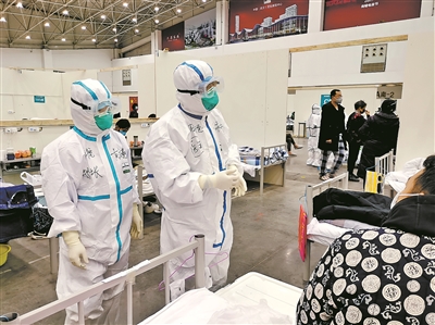 高永哲夫婦說,從進(jìn)入“方艙醫(yī)院”開始,他們一個負(fù)責(zé)為新冠肺炎患者看病,一個負(fù)責(zé)管理病人的護(hù)理。夫婦倆每天待在隔離病房,吃住都在“方艙醫(yī)院”。由于工作性質(zhì)和區(qū)域不同,除了偶爾工作上的交集,他們一天很少有機會見上一面。只有到吃飯休息時間,高永哲才抽空拿起電話問妻子在哪里。