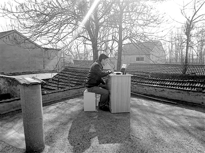 近日,華中農(nóng)業(yè)大學食品科學技術學院教師王魯峰在山東老家的房頂上給學生遠程授課。王魯峰的老家位于山東省的一個偏僻鄉(xiāng)村,手機信號不好,為了取得更流暢的在線授課效果,他把“講臺”搬到了自家房頂上。王文峰 攝