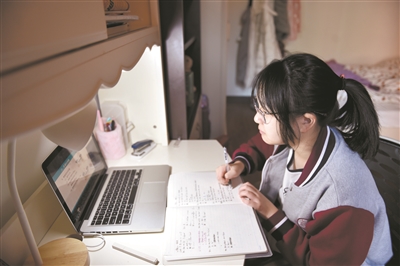 2月17日,北京市第六十六中學(xué)初二學(xué)生黃雅慧在家中線上學(xué)習(xí)。受疫情影響,北京今年春季學(xué)期延期開學(xué)。在原定于2月17日的開學(xué)日,北京百萬中小學(xué)生在學(xué)校教師的指導(dǎo)下開始了“線上”學(xué)習(xí)生活。新華社發(fā)(陳鐘昊 攝)