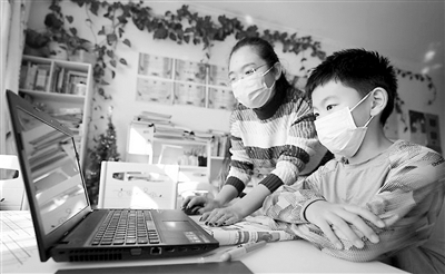 2月13日,山東省鄒平市一居民小區(qū)三年級學(xué)生劉燁霖在家人陪伴下學(xué)習(xí)國學(xué)知識。為應(yīng)對新冠肺炎疫情,鄒平市圖書館向市民和中小學(xué)生免費開通“數(shù)字展廳”“非遺保護專題系列講座”等文化資源,通過各種在線終端在家學(xué)習(xí)國學(xué)經(jīng)典、旅游知識、生活常識等內(nèi)容。