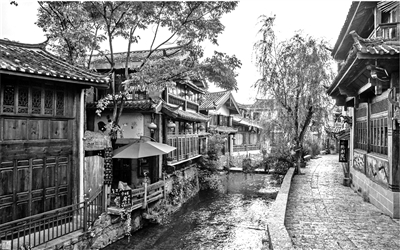 這篇文章別具一格,它巧妙地以一滴水作為切入點(diǎn),這一滴水既是全文的行文線索,也是麗江自然風(fēng)光、歷史沿革和人文風(fēng)貌的見證者。這一滴水從冰雪融化開始,走過麗江壩,過草甸,落入落水洞,從黑龍?zhí)缎褋恚樦窈觼淼剿姆浇?。這一滴水從水車上滴落,從中河進(jìn)入四方街:它先是來到一些店鋪,然后深入麗江人的庭院,它目睹了麗江人的愜意生活。最后它又回到水流中,流出古城,匯入金沙江。毫無疑問,對文章行蹤的梳理,了解麗江古城的變遷和風(fēng)土人情,感受麗江人民的幸福生活,體驗(yàn)作者對麗江的深厚感情,這是我們閱讀的重點(diǎn),這是第二個(gè)教學(xué)內(nèi)容。