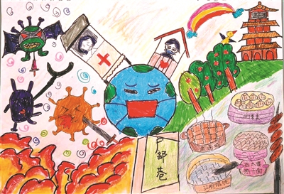 全民抗疫期間,董浩揚小朋友在家里創(chuàng)作了這幅畫,用稚嫩的畫筆畫出了他的想法。
