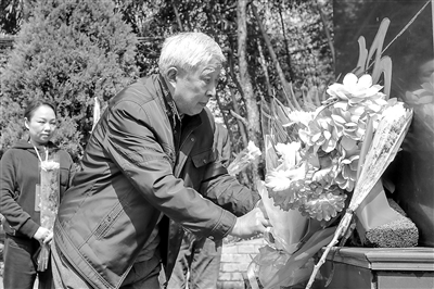 4月1日清晨,浙江省湖州市德清縣阜溪街道龍山村80歲退休老教師蔡永法,從家里出發(fā),步行20多分鐘,來到有18位新四軍犧牲戰(zhàn)士安息的龍山茶山嶺烈士陵園,進行修剪枝葉、擦拭碑牌及清掃地面等工作。至此,蔡永法已無怨無悔義務守護烈士陵園達半個多世紀,先后為到陵園祭奠英烈的人們講解先烈的英雄事跡10多萬次。圖為蔡永法在烈士墓前獻花祭奠。小紹興 攝