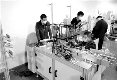 在專家小組成立的第二天,5位教師就趕赴廣東恒鑫智能裝備股份有限公司,參與多臺(tái)HX107型口罩機(jī)的裝配與調(diào)試。幾天后,他們又趕赴中山市嘉信醫(yī)療器械有限公司協(xié)助調(diào)試口罩生產(chǎn)線。