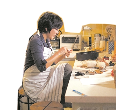 戴著圍裙,手拿針線,面前是正在縫制的布藝人偶;給人偶穿上服裝,讓他們住進(jìn)用快遞包裝盒制作的微型樓房里;布置好場景、道具,再打上燈光開始拍攝……看白希那的工作照,感覺她就像個玩扮家家的小女孩,又像個富有經(jīng)驗(yàn)的電影導(dǎo)演。是的,白希那的圖畫書創(chuàng)作,有點(diǎn)兒不一樣。