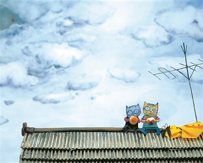 從《云朵面包》開始,白希那嘗試用紙質(zhì)玩偶代替繪畫,用日常生活物品搭建場景,再通過拍攝完成圖畫書的創(chuàng)作?!对贫涿姘芬脖蛔u(yù)為韓國圖畫書走向世界的標(biāo)志性作品。在《月亮冰激凌》中,光源的真實(shí)感是書中一個非常重要的元素,為了達(dá)到最好的視覺效果,她用快遞包裝盒壘起了一棟公寓大樓的模型,窗簾、地毯、沙發(fā)是用各種顏色的布織成的,桌椅、床具是由硬紙片裁剪而成的,陽臺上的欄桿是用鐵絲圍起來的……通過對整棟樓每個房間接入真實(shí)的電路,營造出了真實(shí)的故事場景。《澡堂里的仙女》《糖球》《奇怪的媽媽》《我是狗》都是采用泥塑的創(chuàng)作手法,展現(xiàn)了一種稚拙和夸張的藝術(shù)效果。