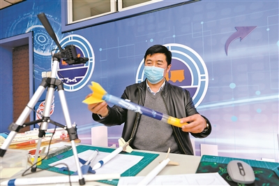 4月8日,北京市第十八中學(xué)科學(xué)教師李家茂正在線上開講科技趣味課,給學(xué)生講解如何制作小火箭。居家學(xué)習(xí)期間,該校開展了一系列科創(chuàng)趣味課程,深受學(xué)生喜愛。