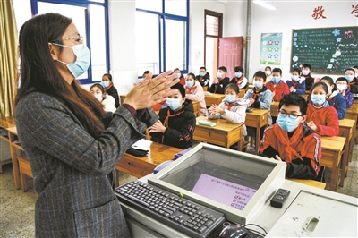 近日,江蘇省鎮(zhèn)江市朱方路小學(xué)教師為返校學(xué)生演示健康防疫常識。當(dāng)?shù)卦谧龊靡咔榉揽氐幕A(chǔ)上,實行錯峰錯時開學(xué),使學(xué)生們安全返校。