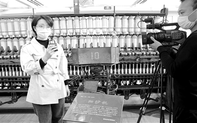 日前,青島市教育科學研究院組織開展小學校本課程在線展示活動,由青島重慶路第三小學進行了“百年印記——走進青島紡織博物館”的“云”研學課程直播展示。該校教師張菲菲和楊笑夢擔任主播,帶領(lǐng)學生“云”游全國首個紡織類博物館——青島紡織博物館,全市小學四年級五年級共4.6萬名學生線上觀看。圖為青島重慶路第三小學主播教師正在“紡織博物館”細紗機展品前向?qū)W生“云”講解。本報記者 孫軍 攝