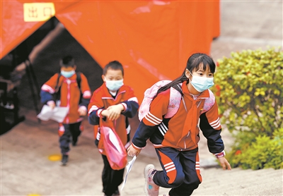 近日,湖南省懷化市通道侗族自治縣禮雅小學(xué)學(xué)生從紅外線體溫檢測通道走出奔向教室。懷化市教育局根據(jù)疫情防控要求,組織該市小學(xué)四、五、六年級學(xué)生,分期分批、錯時錯峰,有序返校開學(xué)復(fù)課。
