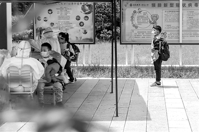 4月26日,浙江省諸暨市海亮小學一至三年級學生開學復課。為保證師生身體健康和生命安全,海亮教育集團對旗下諸暨區(qū)域學校、共計2萬多名師生進行免費核酸檢測。駱善新 攝
