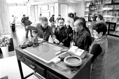 圖為徐重慶弟弟徐湖(右二)帶領(lǐng)參觀(guān)者參觀(guān)徐重慶身前用過(guò)的書(shū)桌。龔思 文 祝潔輝 攝
