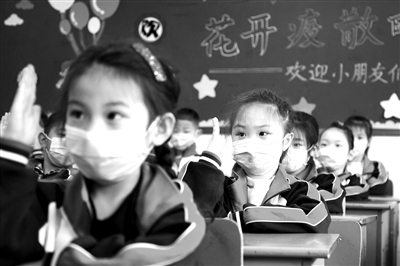 4月26日,浙江省湖州市長興縣第四小學一年級學生在教室上開學第一課。當日,湖州市各小學一、二、三年級學生復課。至此,該市中小學校分期分批、錯時錯峰,完成全面開學復課工作。