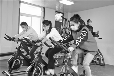 4月20日放學(xué)后,安徽省界首市王烈橋中心學(xué)校九年級(jí)教師在學(xué)校教工活動(dòng)中心鍛煉身體。王烈橋中心學(xué)校是一所偏僻的農(nóng)村學(xué)校,許多老師工作期間吃住在校,為了讓老師教得好、留得下,該校通過(guò)建設(shè)教工活動(dòng)中心、讀書(shū)室,讓老師們過(guò)一種幸福完整的教育生活。目前,界首市所有農(nóng)村中心學(xué)校都建設(shè)了教工活動(dòng)中心。趙亮 劉亞陸 攝