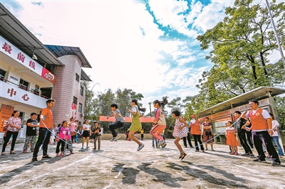 5月4日,四川省廣安華鎣團市委與祿市鎮(zhèn)姚家塝村舉辦“鄉(xiāng)村家庭日”活動,青年志愿者和村里的少年兒童一起參加詩歌朗誦和集體跳繩等互動趣味游戲,在歡聲笑語中共享節(jié)日的快樂。游青 鄭偉 攝