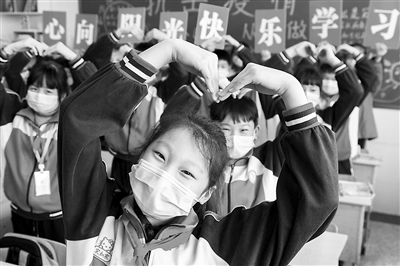 圖為浙江湖州長(zhǎng)興四小學(xué)生在做手語(yǔ)操。復(fù)課后,該校以心理輔導(dǎo)主題班會(huì)的形式消除學(xué)生在疫情期間產(chǎn)生的心理困擾。許斌華 攝
