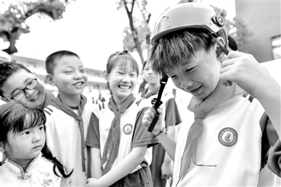 6月11日,浙江省湖州市長(zhǎng)興縣洪橋鎮(zhèn)中心小學(xué)學(xué)生在體驗(yàn)佩戴安全頭盔。6月份是安全生產(chǎn)月,當(dāng)天,長(zhǎng)興縣洪橋鎮(zhèn)組建由消防救援隊(duì)、交警中隊(duì)、志愿者等組成的安全宣講團(tuán),開(kāi)展進(jìn)學(xué)校、進(jìn)農(nóng)村、進(jìn)企業(yè)、進(jìn)社區(qū)、進(jìn)家庭“五進(jìn)”活動(dòng),重點(diǎn)圍繞學(xué)校復(fù)課安全防控、夏季防溺水、規(guī)范佩戴安全頭盔等內(nèi)容開(kāi)展安全宣傳教育,增強(qiáng)公眾安全意識(shí)和安全素質(zhì),提升安全生產(chǎn)水平。