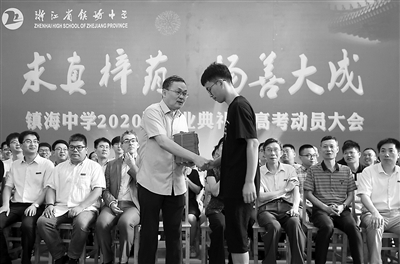7月5日,浙江省鎮(zhèn)海中學舉辦2020屆高三學生畢業(yè)典禮暨高考動員大會。“這是一個平凡又特殊的日子,上半年突發(fā)的新冠肺炎疫情,讓這場相聚來之不易。”鎮(zhèn)海中學校長吳國平在典禮上寄語學生,要不斷加強自身的穩(wěn)定可控性,以應(yīng)對未來諸多不確定和不可控境況。在畢業(yè)典禮上,鎮(zhèn)海中學高三年級學生集體進行成年宣誓,整裝待發(fā),迎接高考這一成人禮。
