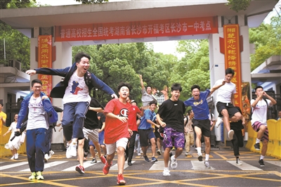 7月8日,考生們在高考結(jié)束后跑出湖南省長沙市一中考點(diǎn)。當(dāng)日,全國部分地區(qū)2020年高考結(jié)束。