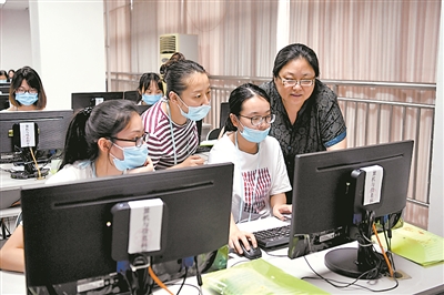 7月12日,在西南大學(xué)高考評卷現(xiàn)場,教師們在進(jìn)行探討。據(jù)悉,重慶今年高考網(wǎng)上評卷7月10日開始,近1300名評卷教師將評閱約76萬份試卷。