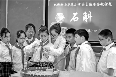 6月28日,江蘇省如皋師范學校附屬小學學生在學習中草藥知識。該校把“本草小學園主題整合微課程”作為特色教育之一,利用校園房前空地等資源建成本草小學園,種植多種當?shù)爻R姷闹胁菟帲瑢W生參與到中草藥的種植、辨認、采摘、加工等活動中,傳承中醫(yī)藥文化。