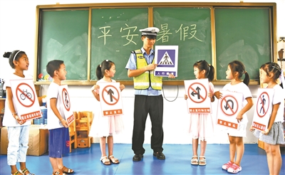 日前,一名交警來到湖南省永州市江永縣中心幼兒園,為孩子們講解交通安全知識。據(jù)悉,暑假來臨之際,江永縣各幼兒園紛紛開展“暑假安全課”主題活動,以增強孩子們的安全意識。