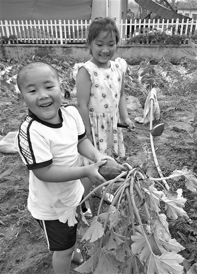 又到夏菜采收季節(jié),山東省五蓮縣松柏鎮(zhèn)中心幼兒園的孩子們在園內(nèi)興高采烈地采收土豆和方瓜等蔬菜。他們在揮汗如雨的同時(shí)也體驗(yàn)了勞動(dòng)和豐收的快樂。