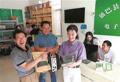 8月6日,在位于陜西省漢中市鎮(zhèn)巴縣的西北農(nóng)林科技大學(xué)研究生助力團(tuán)工作站,助力團(tuán)團(tuán)長韓碩拿出團(tuán)隊(duì)成員針對(duì)當(dāng)?shù)刂兴幉?、香菇等特色農(nóng)副產(chǎn)品精心設(shè)計(jì)的多個(gè)外包裝樣品,征求村民的意見。