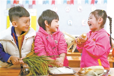 近日,四川省華鎣市大熊貓實(shí)驗(yàn)幼兒園的小朋友在學(xué)習(xí)認(rèn)識(shí)玉米、稻谷等糧食作物。華鎣市在各中小學(xué)和幼兒園廣泛開展“節(jié)約糧食,從我做起”主題教育活動(dòng),通過講故事、唱兒歌和看實(shí)物等通俗易懂的形式,讓孩子們了解糧食的由來、知曉種糧的辛苦, 從小養(yǎng)成不挑食、不浪費(fèi)、愛惜每一粒糧食的良好習(xí)慣。邱海鷹 攝