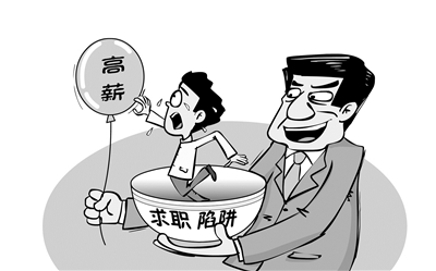 據《中國青年報》報道,今年21歲的王宇(化名)壓根兒沒想到,夢寐以求的高薪工作竟是一場精心設計的騙局。王宇曾在某廣告上看到物流公司招聘物流專員,工作內容主要是做物流跟單、配送,要求長期出差,底薪為短途6000元、長途8000元,加上每天100—200元的補貼,月薪能到1萬元左右。讓王宇沒想到的是,這份號稱月薪萬元的工作竟是在電子廠生產線當普通小時工,賠了長途路費和入職押金不說,起早貪黑干了一個月,他只拿到830元工資。今年6月,蘇州吳江警方查獲了這起以虛假招工為名,誘騙應聘者長途參加面試并騙取錢財的犯罪團伙,涉及受害人134名,涉案金額40萬余元。