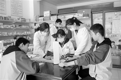 日前,山東省安丘市大汶河旅游開發(fā)區(qū)大華中學初一(2)班學生走進社區(qū)衛(wèi)生所開展職業(yè)體驗活動,在醫(yī)師指導下為同學測量血壓。近年來,該校把職業(yè)體驗教育作為人生規(guī)劃指導課程的重要內容,讓學生在實踐中獲得體驗、體悟和體認,培養(yǎng)職業(yè)興趣和動手能力。解文卿 攝