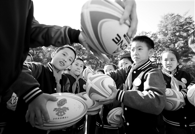 近日,沈陽農(nóng)業(yè)大學附屬小學學生在沈農(nóng)橄欖球隊隊員的輔導(dǎo)下進行橄欖球基礎(chǔ)訓練。近年來,沈陽農(nóng)大附小依托大學資源,開設(shè)橄欖球特色體育課程,讓學生享受運動樂趣,增強身體素質(zhì),錘煉意志品質(zhì)。張宜軍 本報記者 張學軍 攝