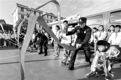 近日,在浙江省湖州市長興縣夾浦鎮(zhèn)中學(xué),消防綜合應(yīng)急救援隊(duì)隊(duì)員與學(xué)生一起進(jìn)行實(shí)景演練。夾浦鎮(zhèn)中學(xué)與夾浦村聯(lián)合舉辦消防安全主題活動(dòng),讓學(xué)生們體驗(yàn)組裝消防水帶、滅火防護(hù)服穿戴等環(huán)節(jié),提高消防安全意識(shí)和自防自救能力。 譚云俸 攝