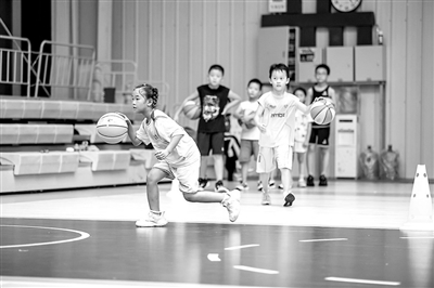 近日,孩子們?cè)诤颖笔『愂袕?fù)興區(qū)體育中心練習(xí)籃球基本功。聶長(zhǎng)青 攝
