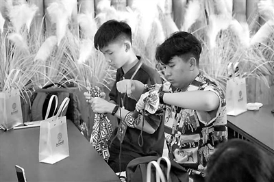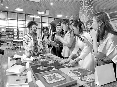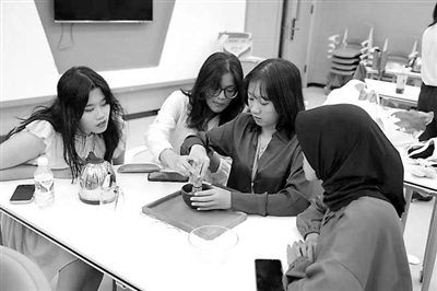 東盟國(guó)家職業(yè)教育來(lái)華留學(xué)生體驗(yàn)中國(guó)文化。圖①為學(xué)生在體驗(yàn)壯族刺繡。圖②為學(xué)生在制作五子養(yǎng)生錘。圖③為學(xué)生在練習(xí)仿宋點(diǎn)茶。