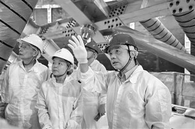 王貽芳院士(右一)在江門中微子實驗建設(shè)現(xiàn)場。中國科學(xué)院高能物理研究所供圖